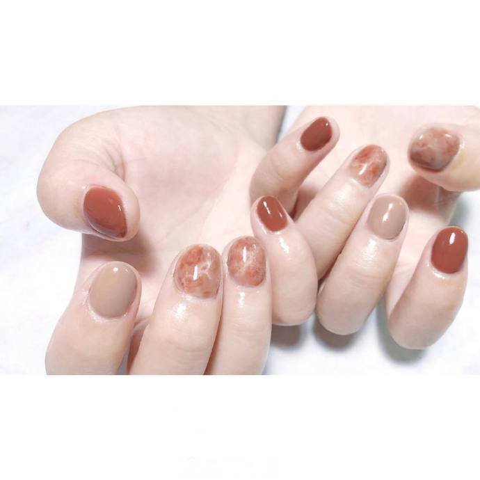 哇图网>秋天美甲图片>秋日里必不可少的石纹晕染美甲