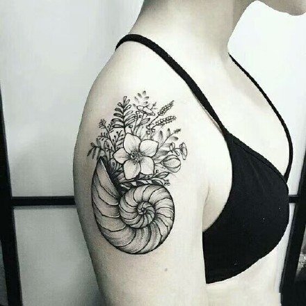 哇图网>海螺纹身图片>一组漂亮的海螺纹身图案作品9张
