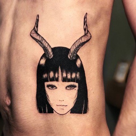 黑色调的一组小女郎纹身图片作品(5)