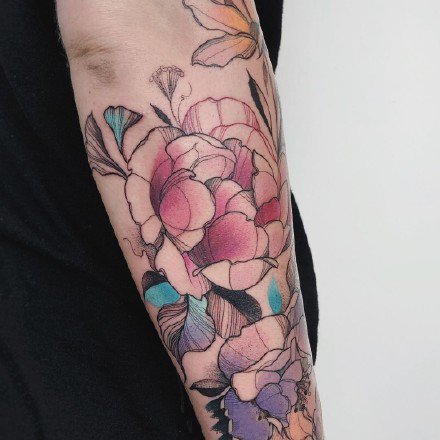 27组女生喜欢的小清新彩色花卉纹身图案