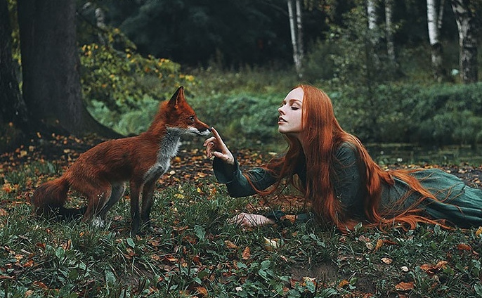 哇图网>写真摄影图片>红狐与少女,最美的化身,镜头中的童话世界
