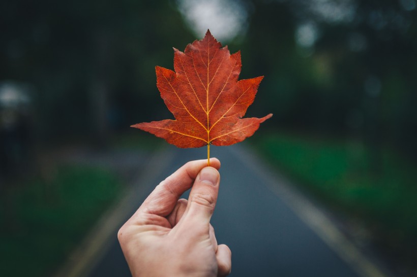 手拿落叶的人物图片_13张(5)