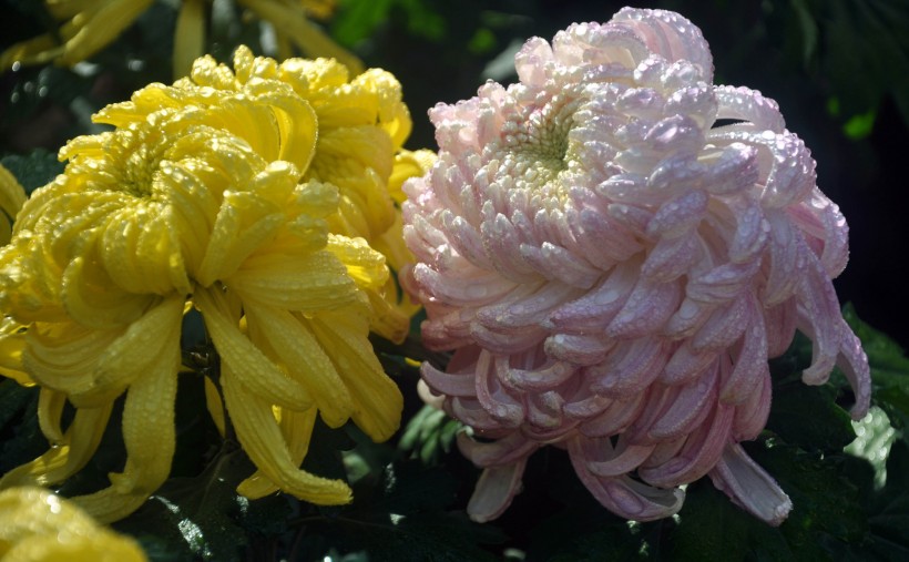 哇图网>花卉图片>雨后娇艳欲滴的菊花图片_11张