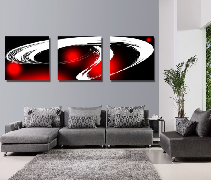 哇图网>简约图片>简约黑白红三联挂画图片_20张