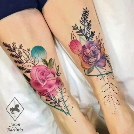 27组女生喜欢的小清新彩色花卉纹身图案(26)