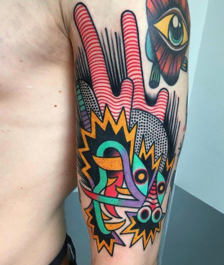 哇图网>水彩纹身图片>27组水彩跟卡通相结合的彩色纹身作品