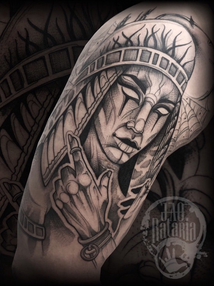 哇图网>宗教纹身图片>神话纹身 黑灰色调佛纹身宗教神话等纹身图案