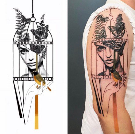 哇图网>创意纹身图片>创意纹身 正着看和倒着看的一组纹身图案