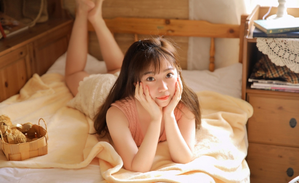 哇图网>写真摄影图片>粉红美女萝莉吊带长腿大胆性感写真