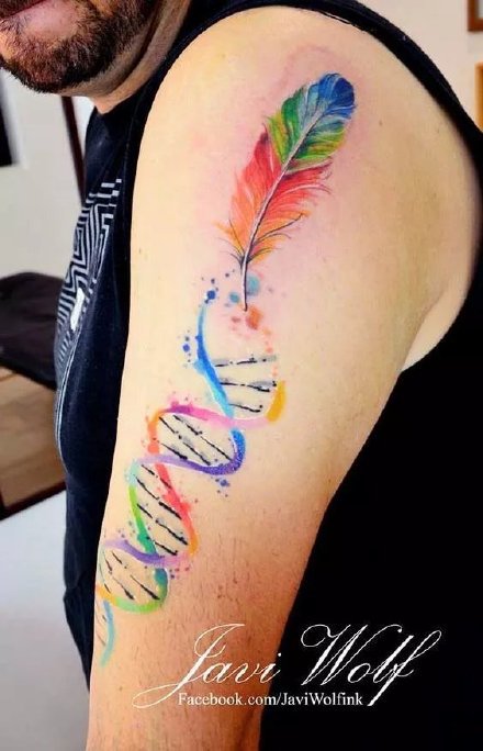 哇图网>基因纹身图片>基因链纹身 26款好看的基因链符号主题的纹身图案