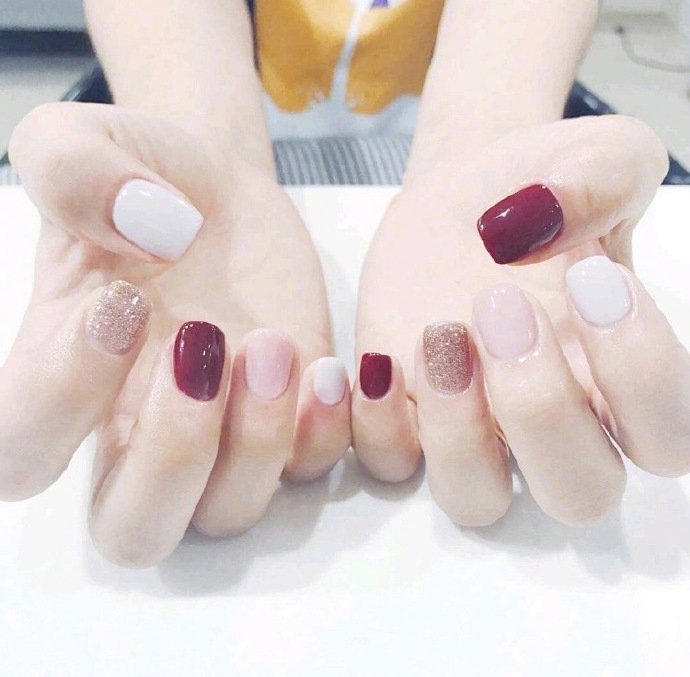 2017新款简单又好看的黑白搭配短指甲美甲图片