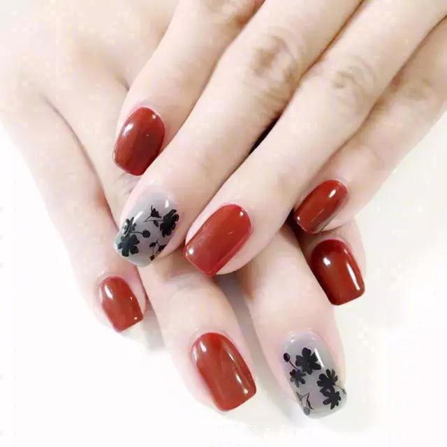 枫叶色美甲,让你白到发光(8)
