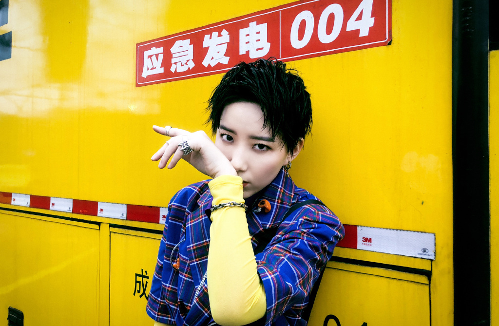 哇图网>明星李斯丹妮图片>李斯丹妮紫色格子衬衫时尚写真