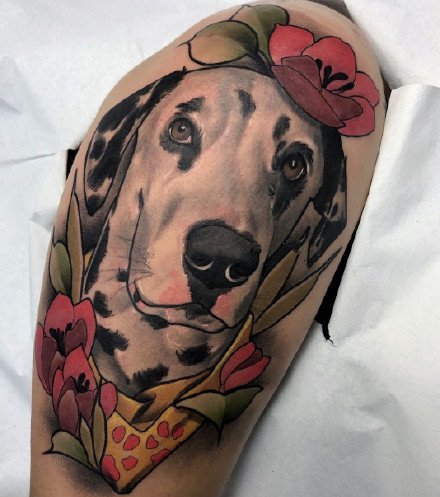 哇图网>狗纹身图片>newschool的18款宠物狗纹身作品图案