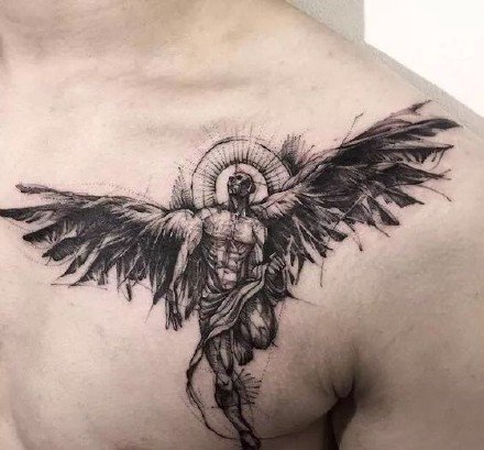 18款帅气的黑灰翅膀纹身作品图(14)