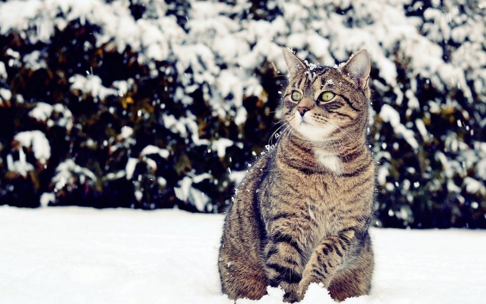 哇图网>猫猫图片>雪地上玩耍的猫咪写真图片