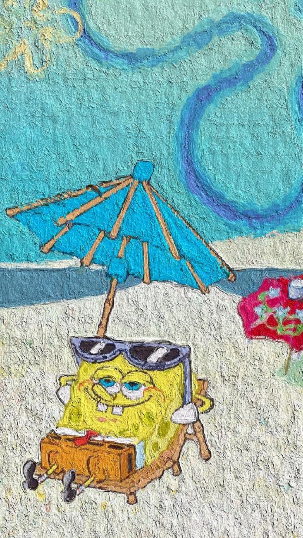 海绵宝宝清新可爱油画手机壁纸(9)