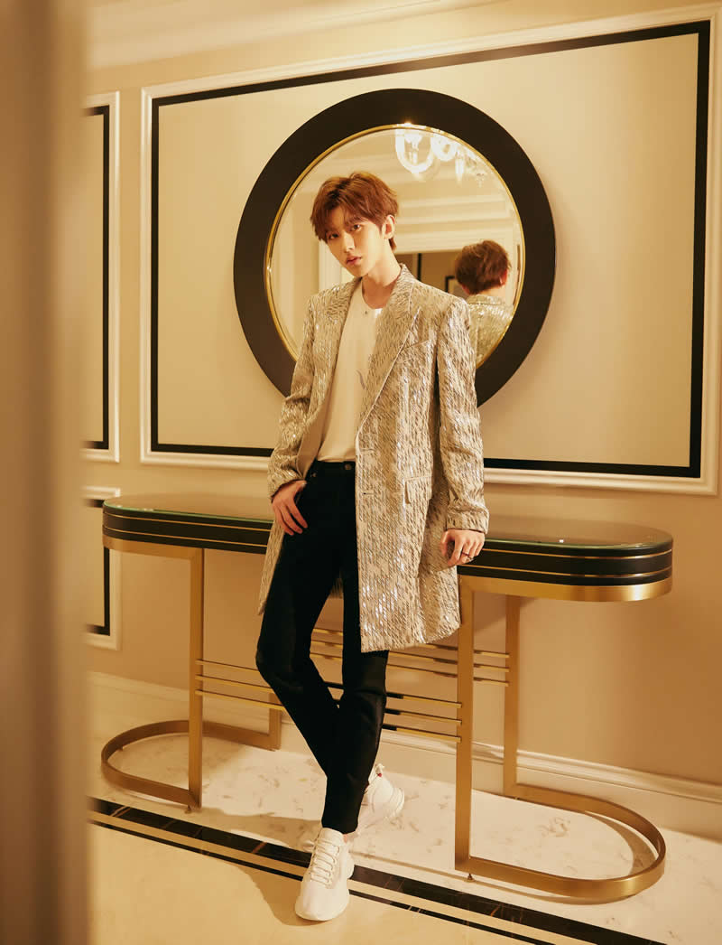 哇图网>明星帅哥图片>蔡徐坤闪亮条纹西装时尚写真图片