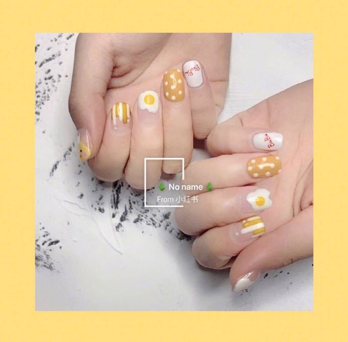 哇图网>可爱美甲图片>可可爱爱的小荷包蛋美甲图片