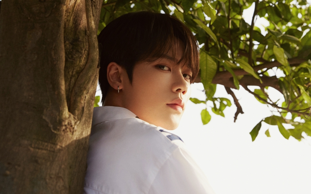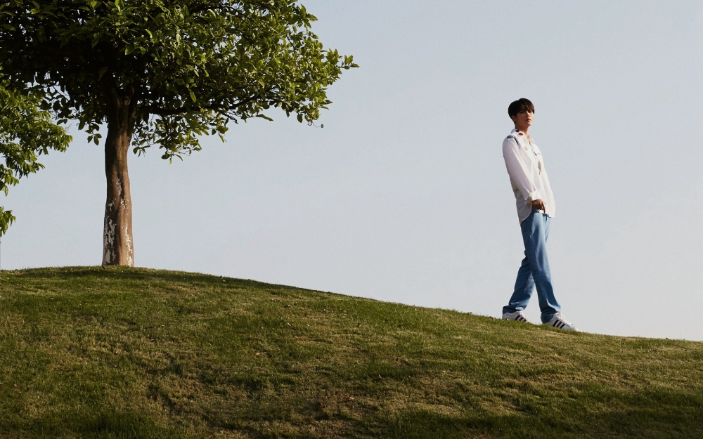 哇图网>明星帅哥图片>歌手林彦俊清新白衣少年写真图片