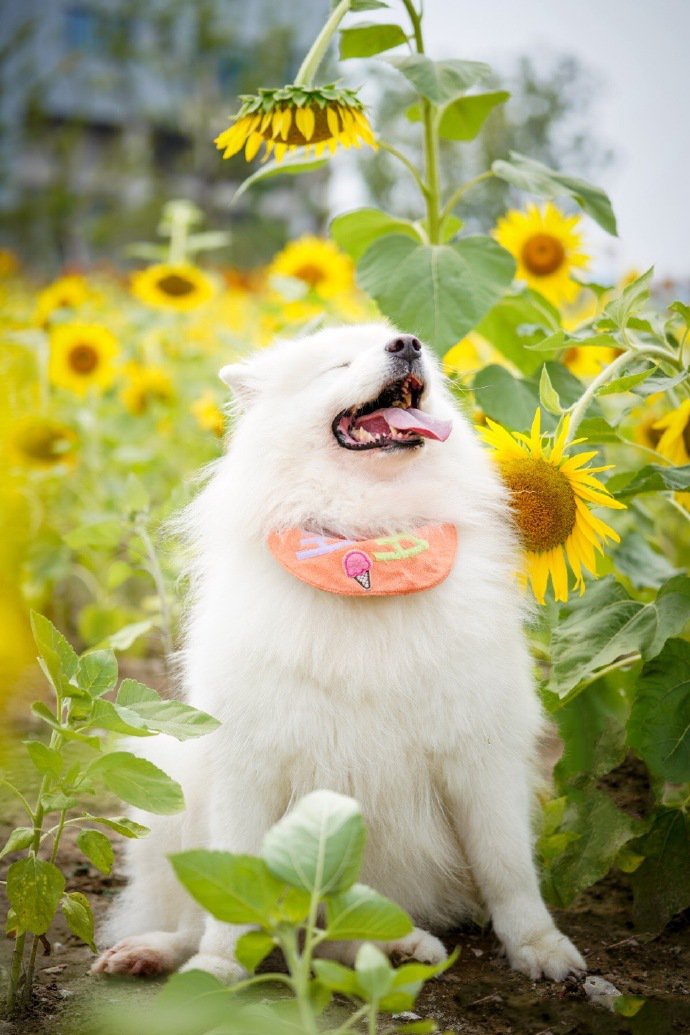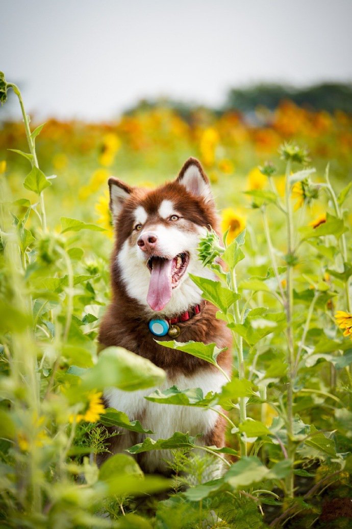 向日葵花海里拍照的狗狗(5)