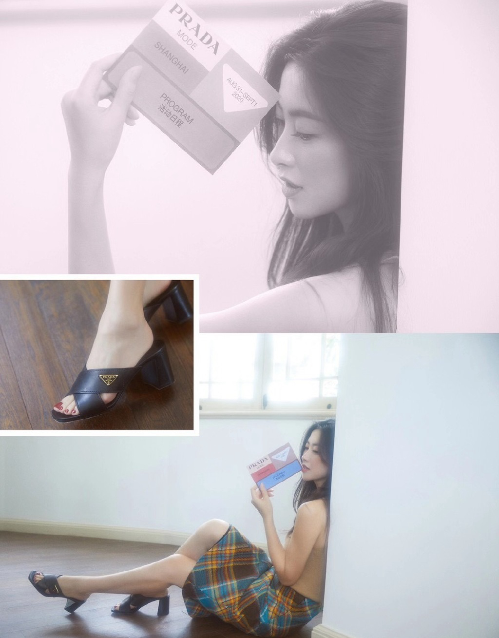 哇图网>明星朱珠图片>朱珠格纹裙性感优雅写真图片