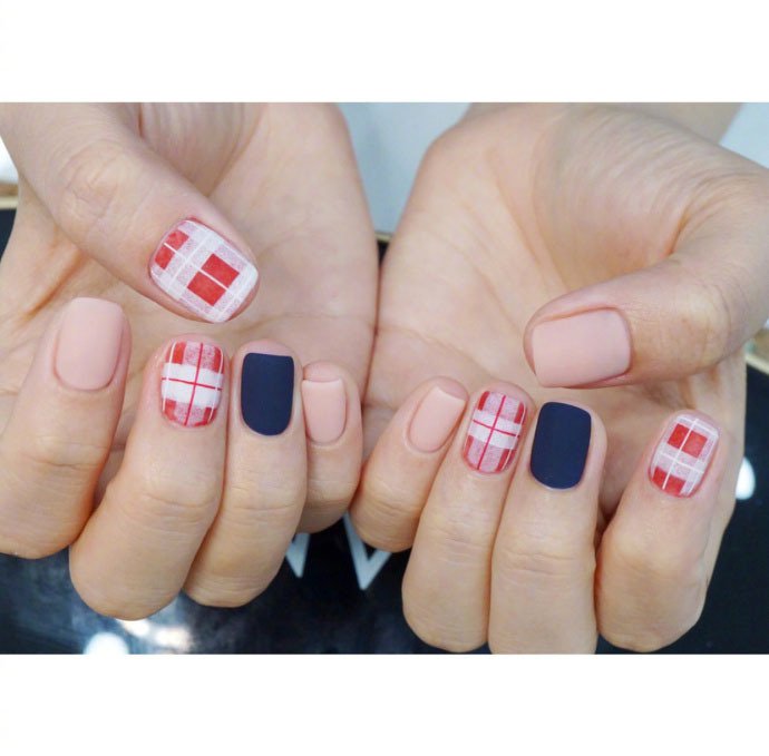 一组适合秋冬的格纹美甲(5)